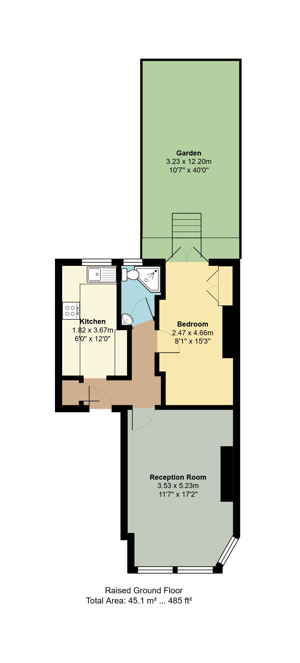 A charming raised ground floor converted flat with lots of natural light and enjoying sole use of a private rear garden.