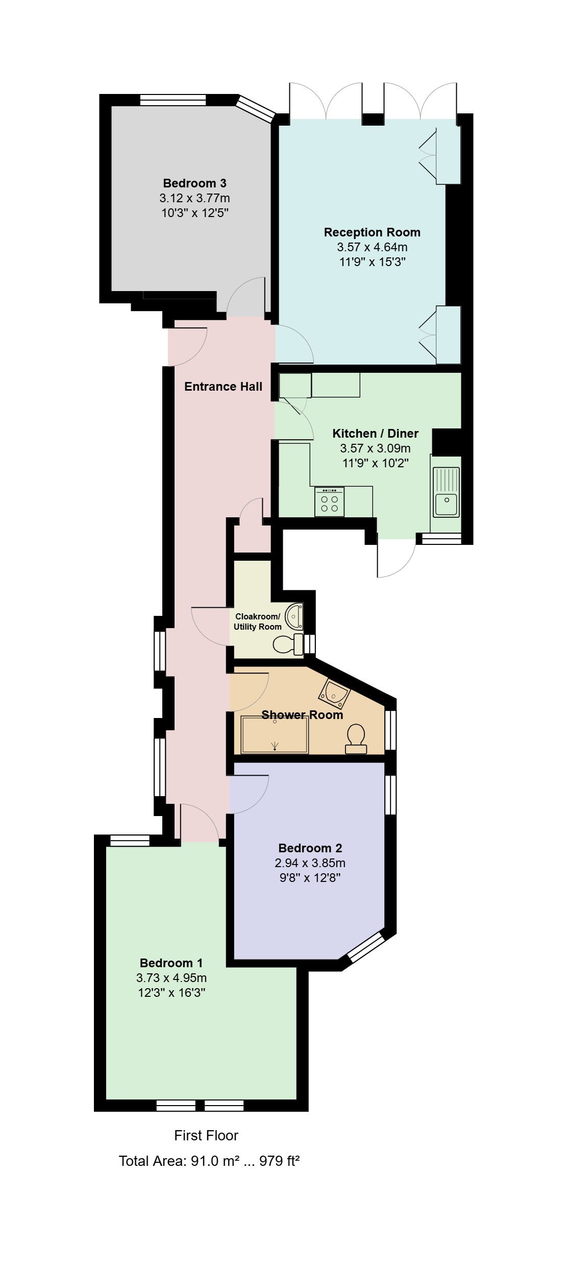 - Three Double Bedrooms