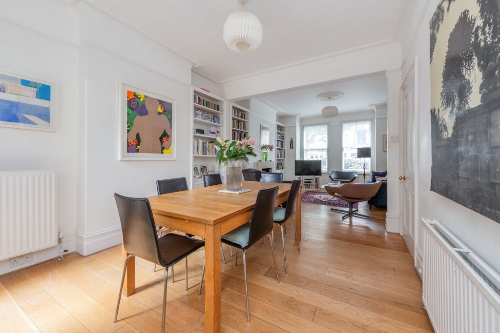 This characterful home features an elegantly proportioned double reception room which leads to a large kitchen and opens on to a pretty west facing garden. The house has five double bedrooms arranged over the upper floors most if which have useful built-in storage. The property has lots of natural light and retains charming period detail including fireplaces, ornate cornicing and stripped timber flooring. The property enjoys a light, open aspect to the rear and has a pretty west facing walled garden.